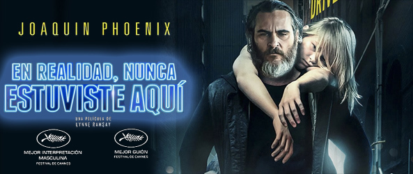Título original: You Were Never Really Here; Año: 2017; Duración: 95 minutos; País: Reino Unido; Dirección: Lynne Ramsay; Guión:Lynne Ramsay (Novela: Jonathan Ames); Intérpretes: Joaquin Phoenix, Alessandro Nivola, John Doman, Judith Anna Roberts,Alex Manette, Ekaterina Samsonov, Kate Easton, Jason Babinsky, Frank Pando,Ryan Martin Brown, Scott Price, Dante Pereira-Olson, Jonathan Wilde,Leigh Dunham, Vinicius Damasceno.